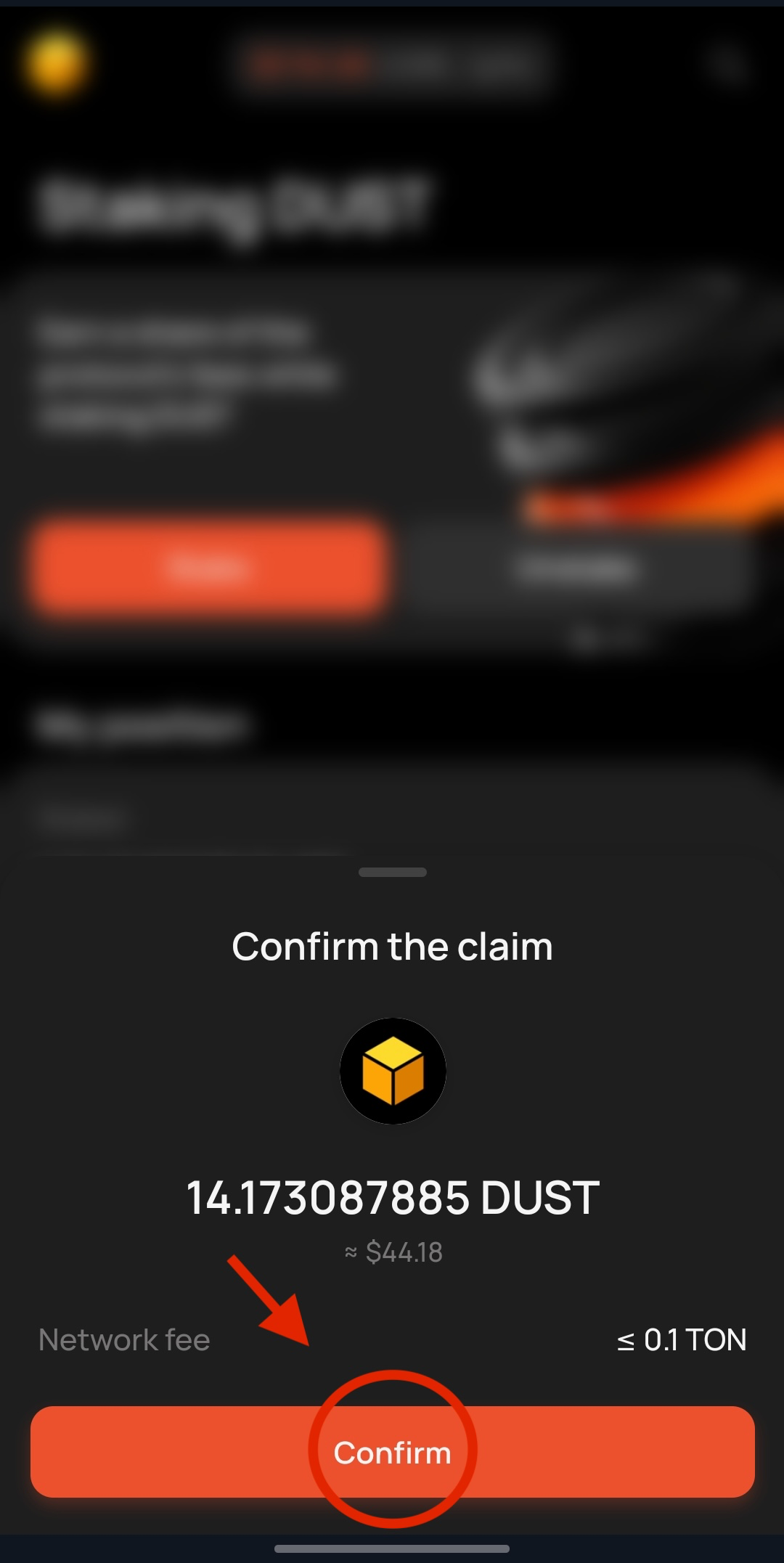 Tap on the 'Claim' button to verify your transaction. Then, your wallet will ask for a confirmation to finalize the transaction on the blockchain.