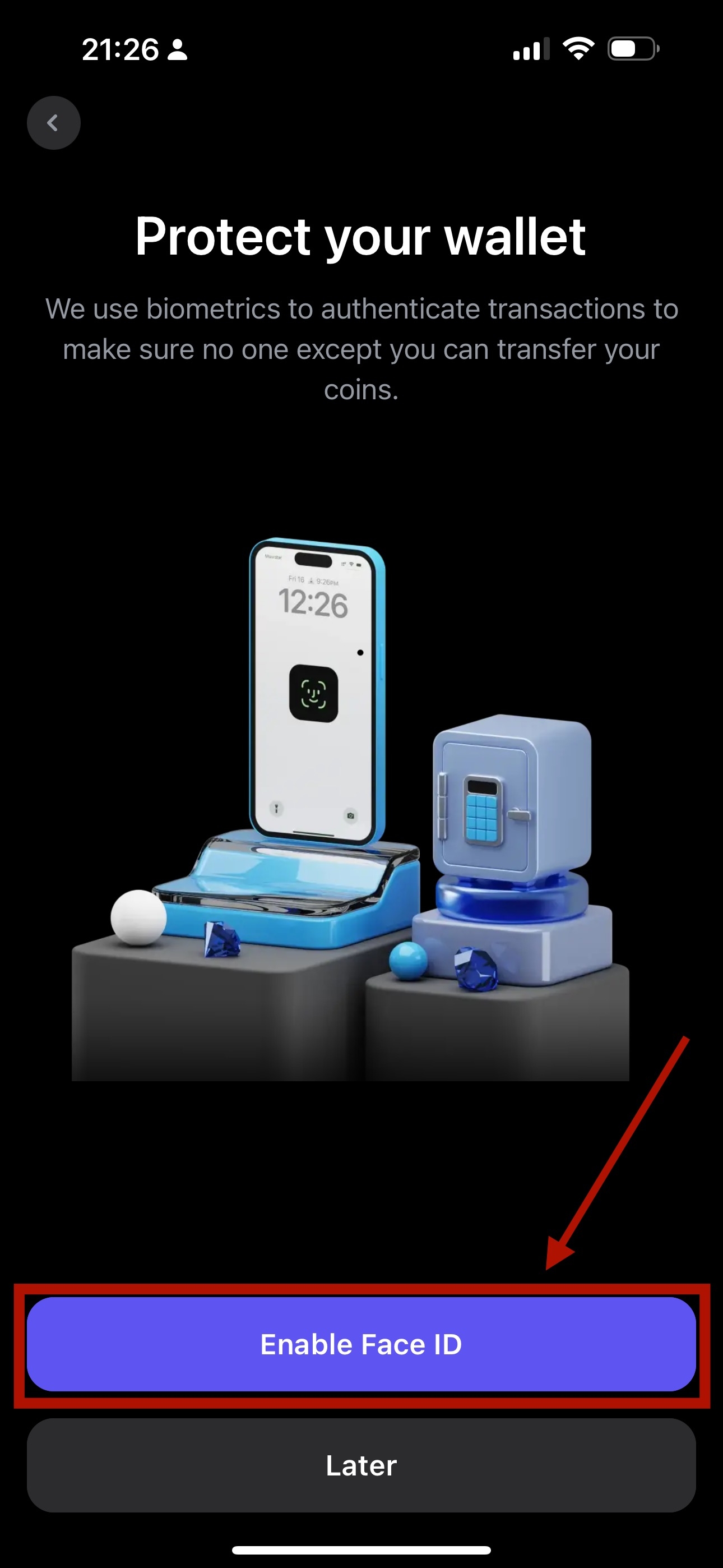 Consider enabling biometric authentication — fingerprint or face ID. If you forget the password, use the seed phrase to recover access.