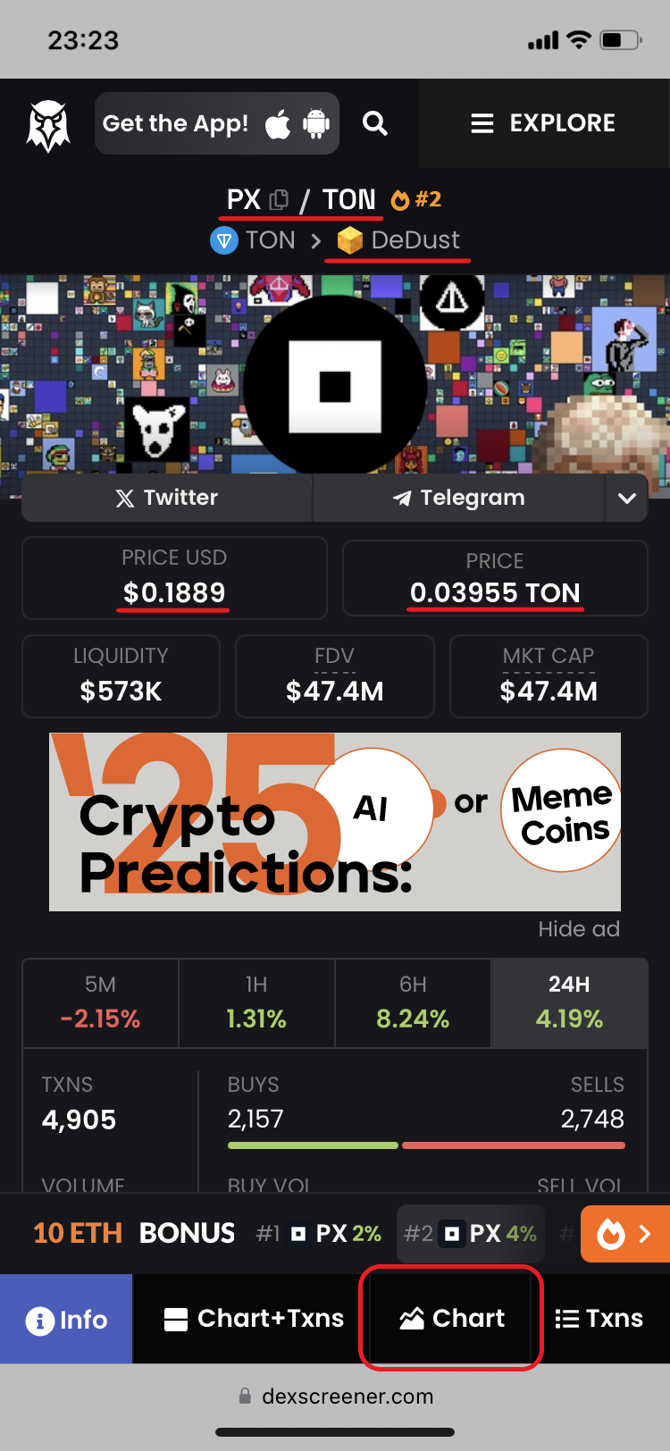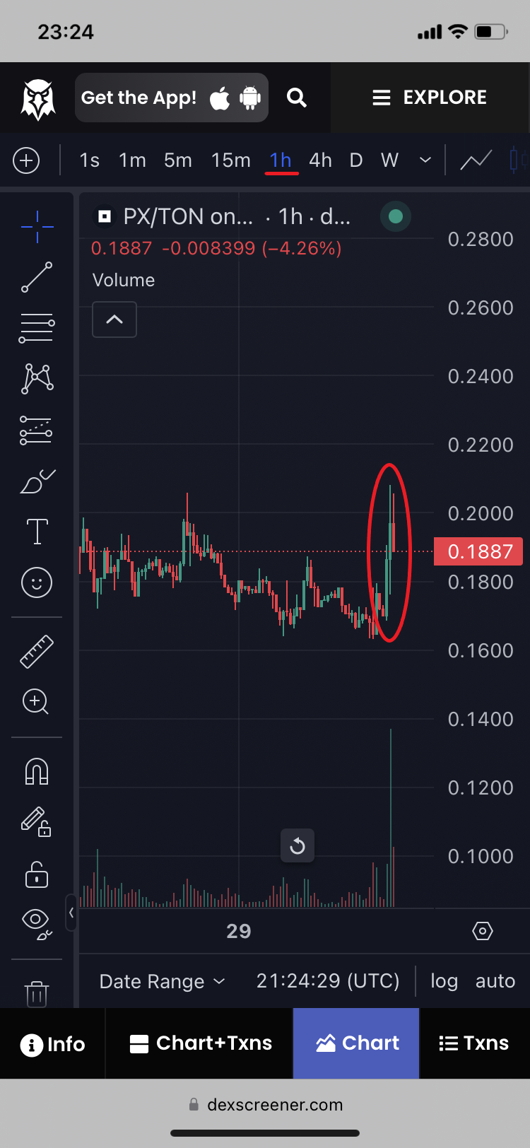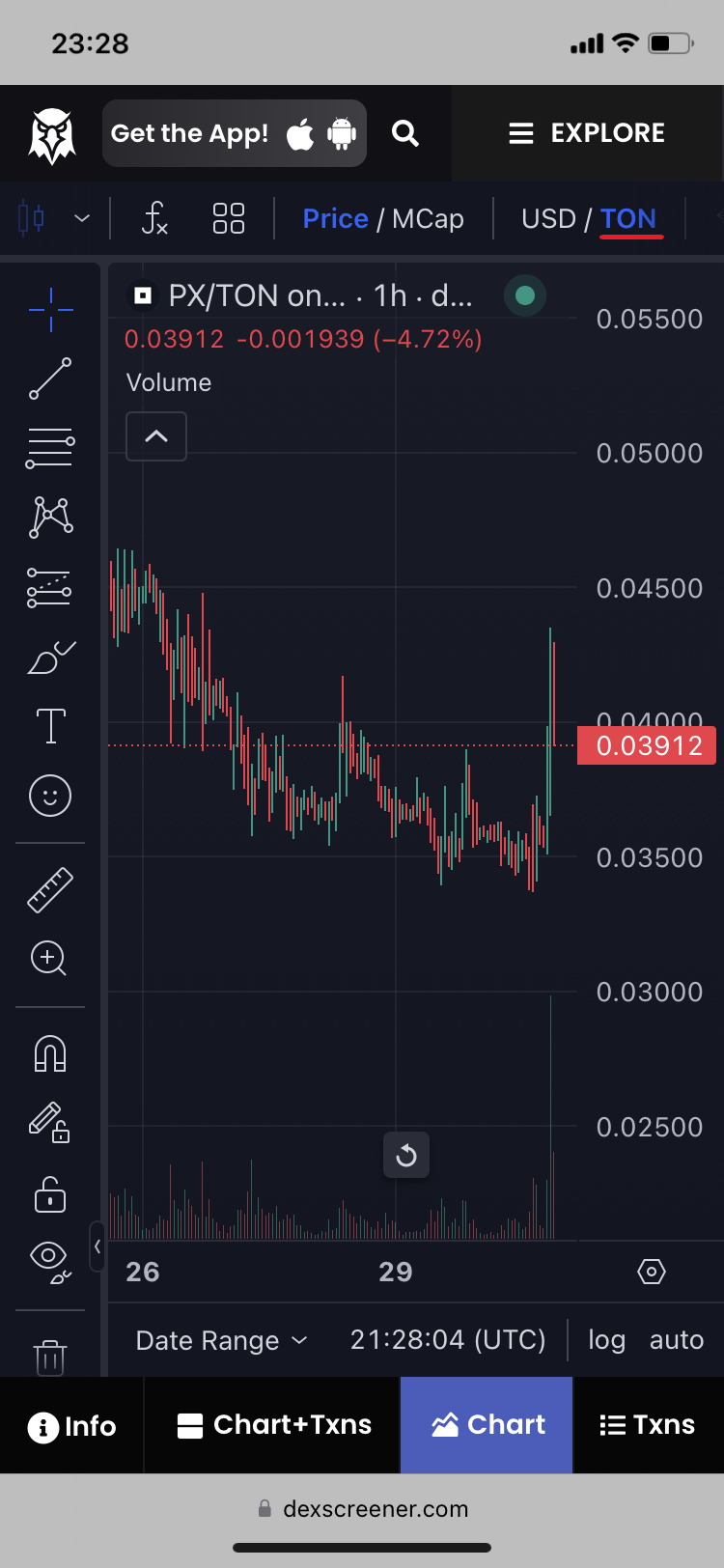 10. Now swipe to the right on the chart pannel to switch it to PX/TON[^8] instead of PX/USD.