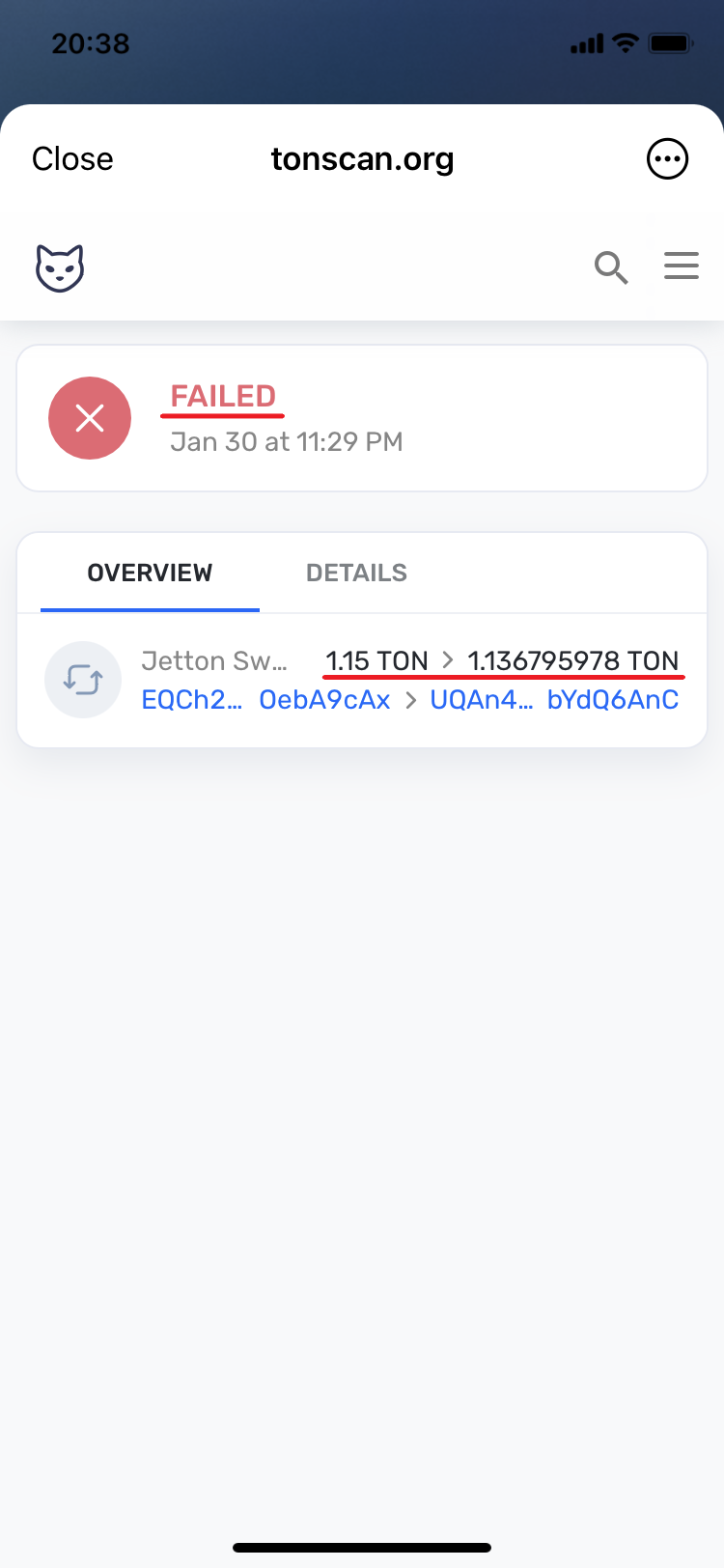[^10]: *And thus 0.11545096 TON, that left unused, were successfully returned back to your wallet after the swap.*